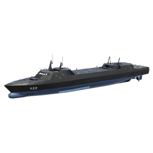 An experimental cruiser of South Korea, based on the old "turtle ship" concept. The ship's hull was strengthened with additional armor plates and can withstand more hits. The ship's increased displacement limits its maximum speed, but numerous side thrusters allows it to remain quite maneuverable. It carries several missile batteries and grenade launchers, and also has a unique reconnaissance helicopter that can remotely guide missiles.