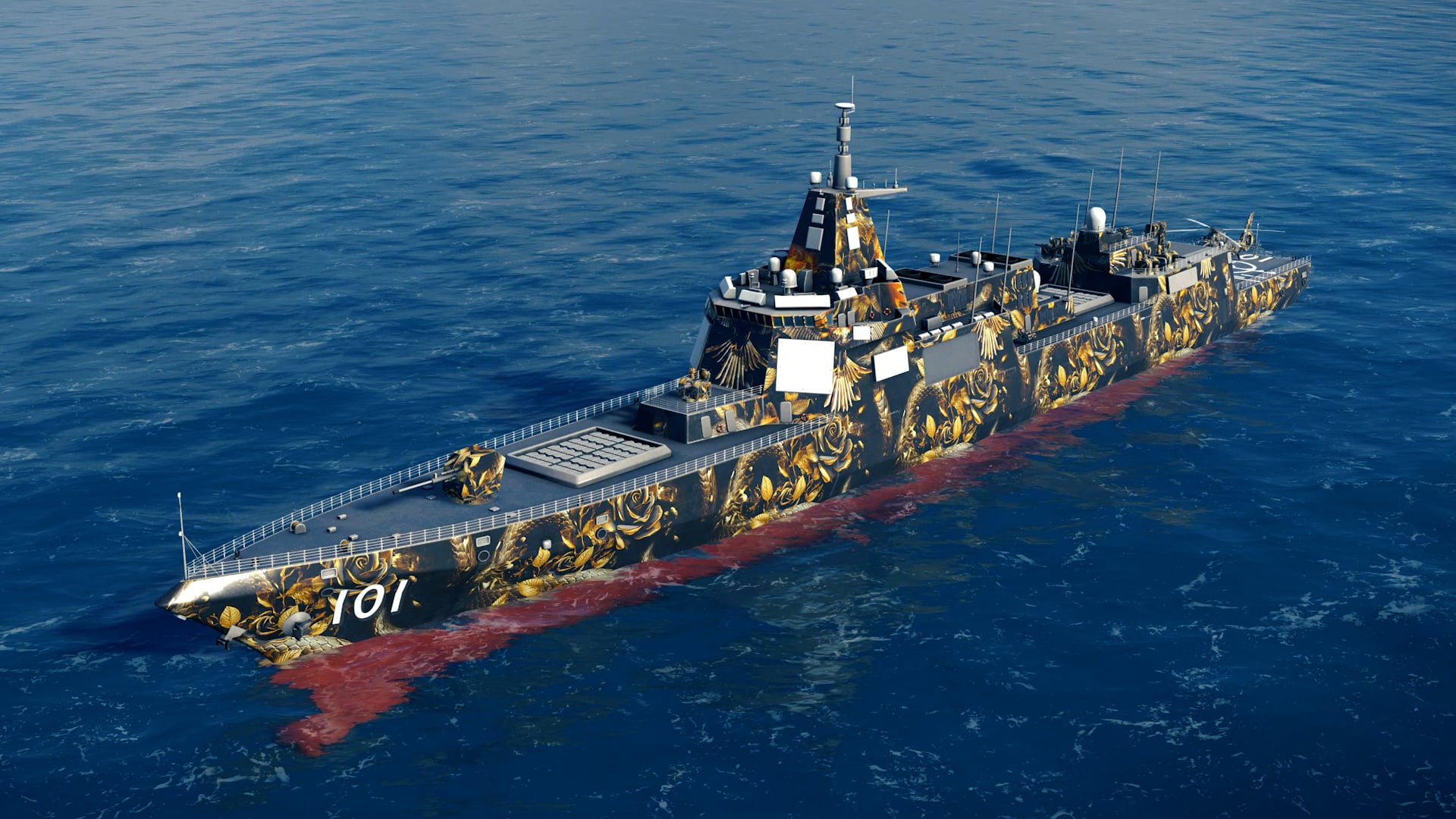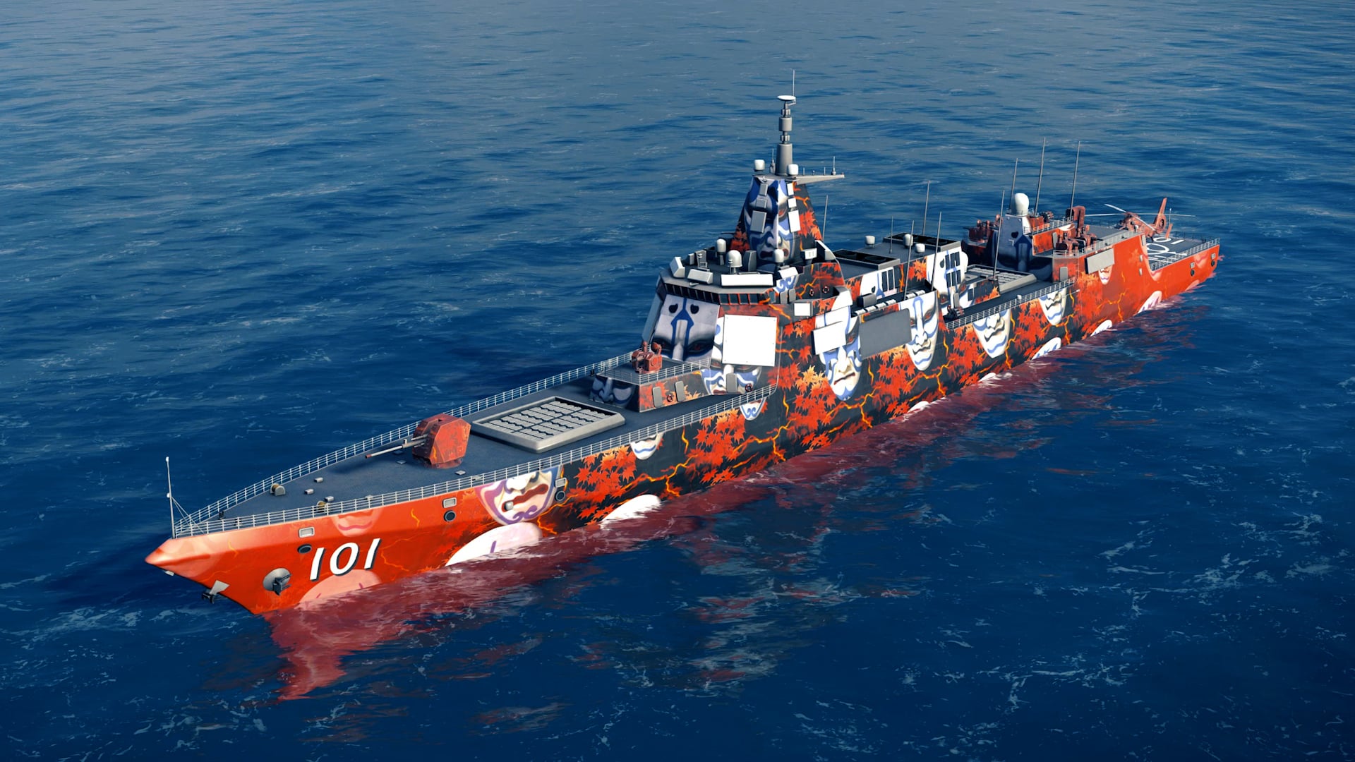 In addition to two torpedoes, there are plenty of air defense systems, including Bofors autocannons that can target aircraft, an Aster-30 Block 0 missile system, 5 HELS lasers and one free air defense slot. While the ship can fight back against submarines with its two torpedo slots, the lack of grenade launcher makes it vulnerable to enemy torpedoes. This ship is the final reward in the Battle Pass which means you can get it for free.