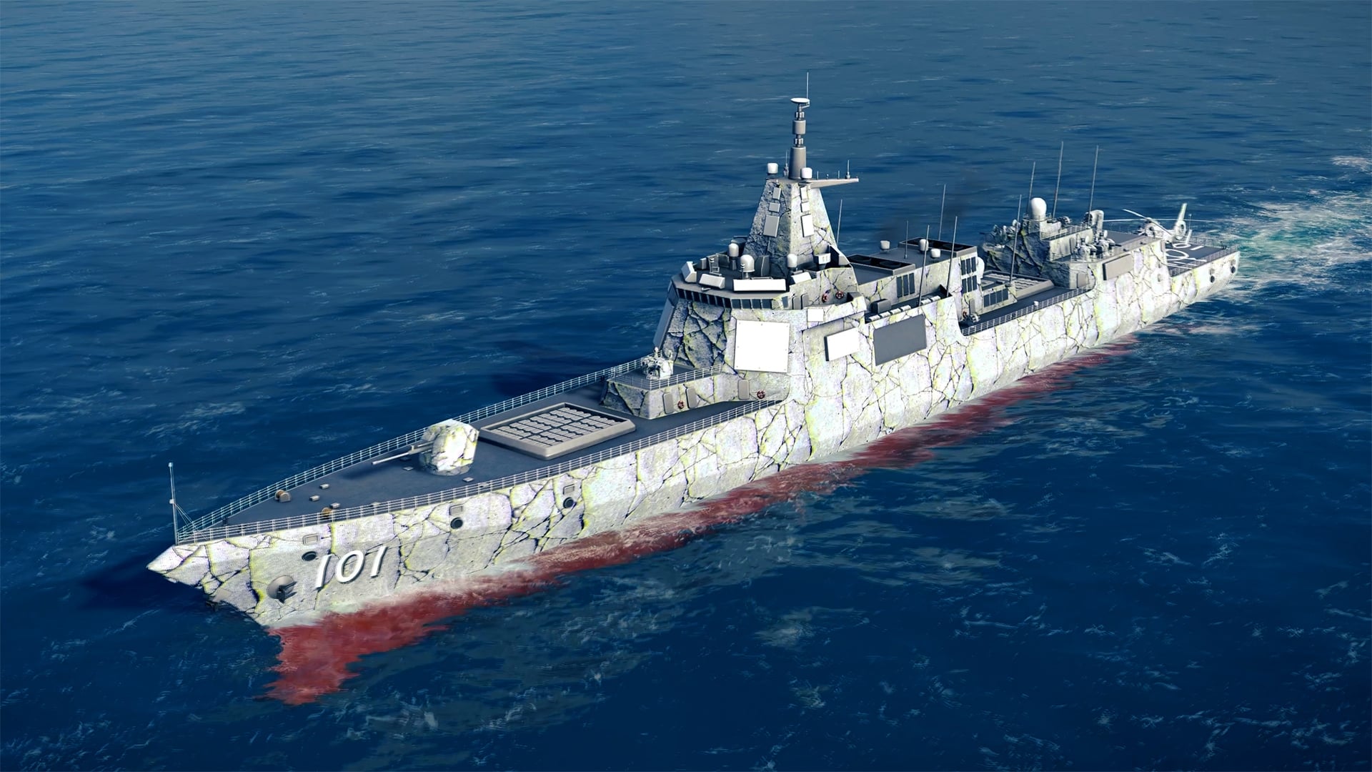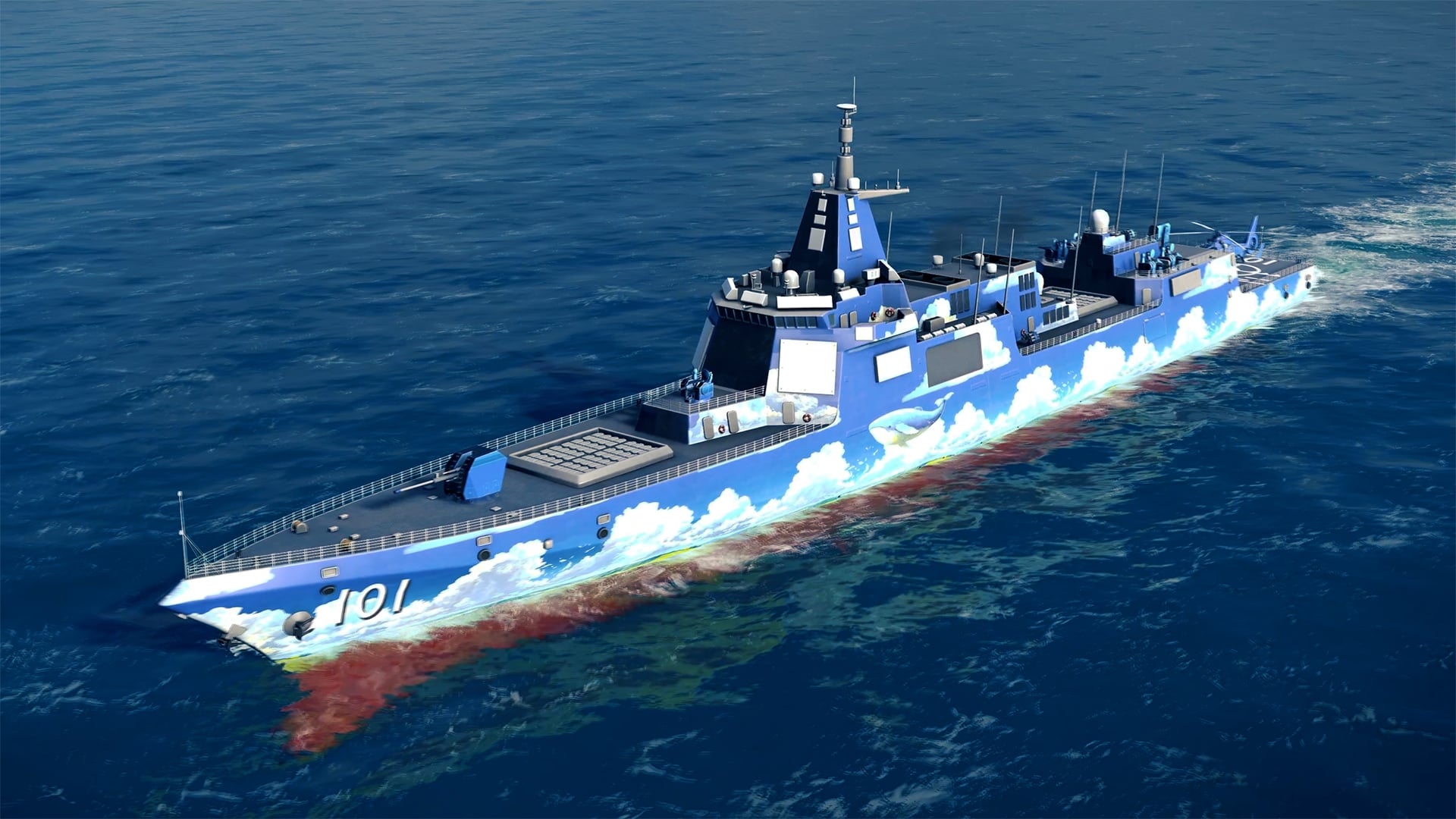A new unmanned vehicle has been added to the game, the JARI USV. Unlike the previous unmanned underwater vehicles Type 101 and Type 102 which could operate underwater, this is a surface ship that works like a miniature frigate. It is also the first unmanned unit available in the shop: it can be purchased using gold bars.
