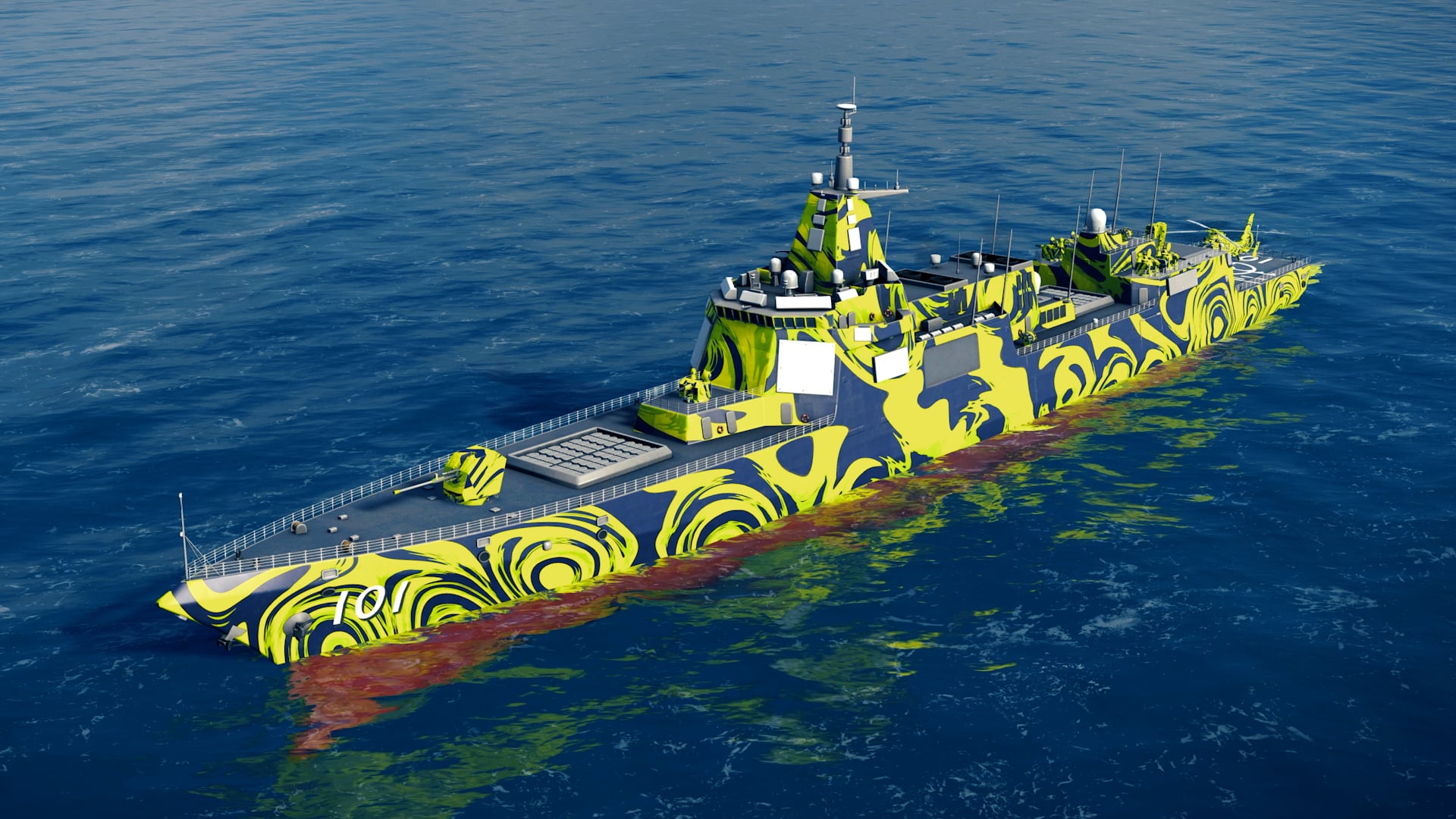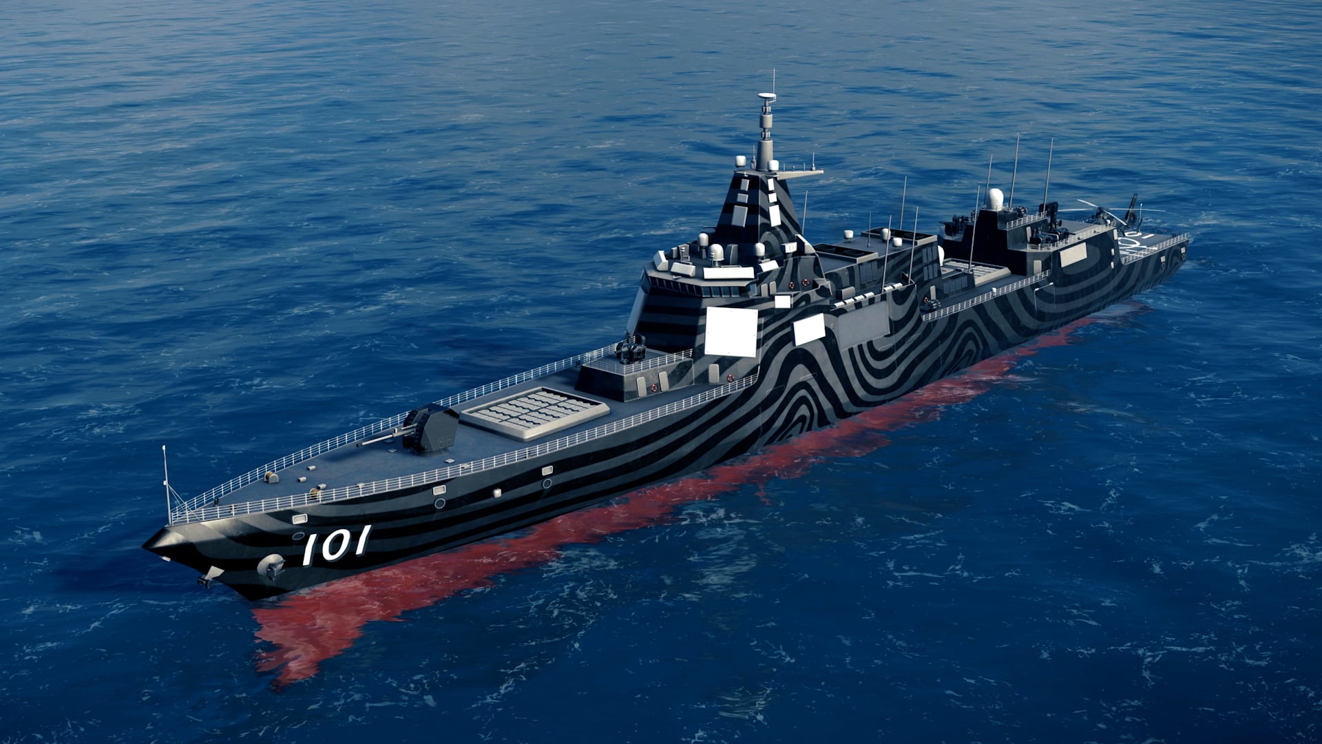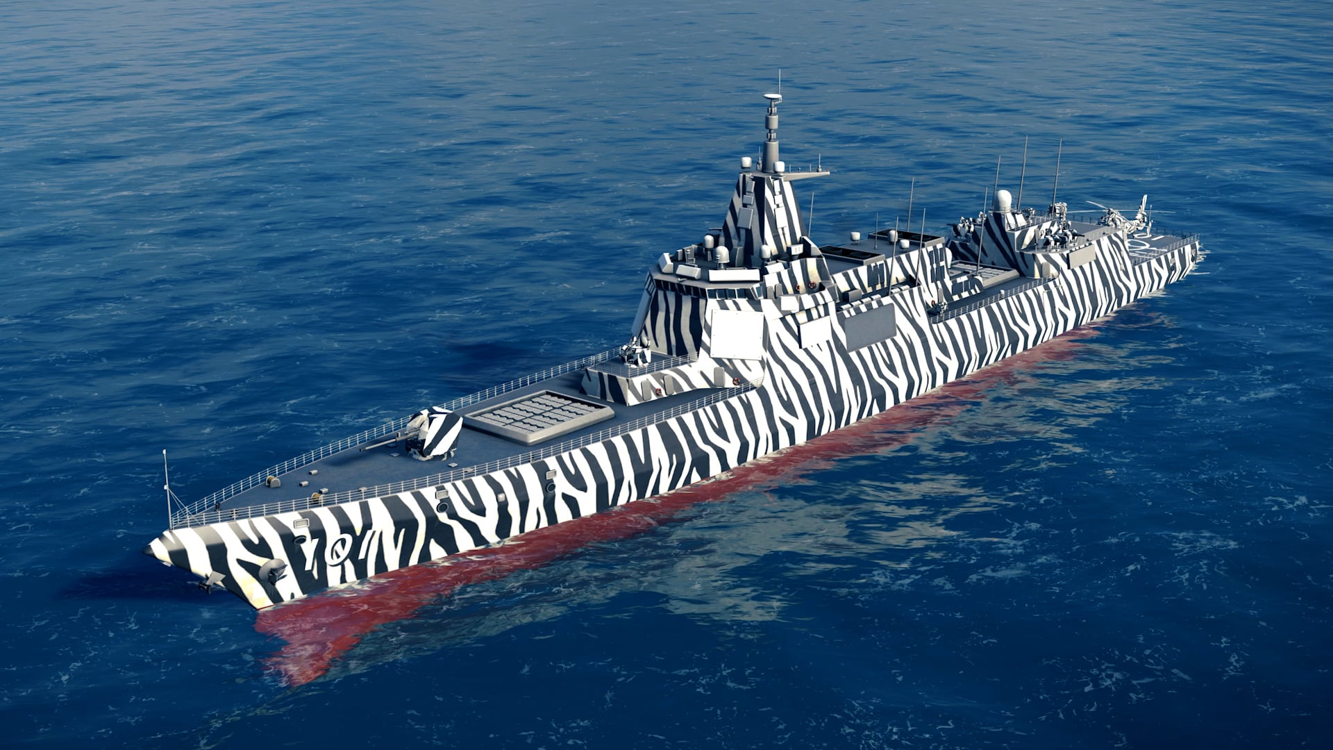 This is a more subdued camouflage that shows the natural color of the ship but has animated cracks with shifting colors. You need the Premium Battle Pass to obtain this camouflage.