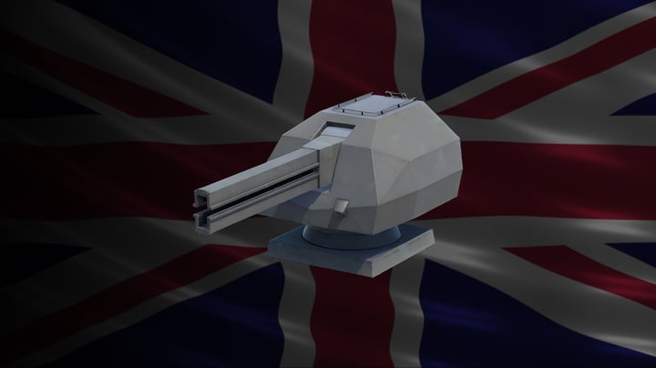 A prototype of an electromagnetic rail gun for the British Navy. It has exceptional projectile speed and accuracy and is capable of dealing serious damage, but comes with a long reload process.