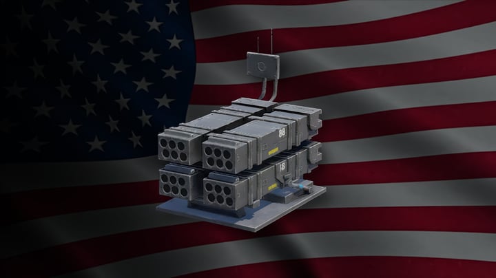 A heavy 300 mm multi-rocket launcher system effective against surface and underwater targets at short range.