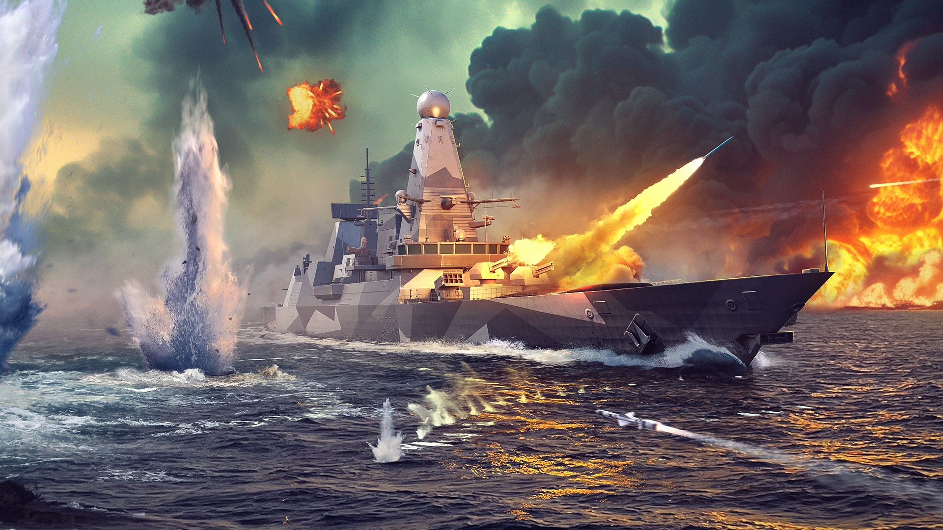 An experimental project of a modern British Navy destroyer. Developed on the basis of the Daring-class ships, this version has a strengthened hull and can engage all types of targets, while being heavily protected by several anti-aircraft systems.
